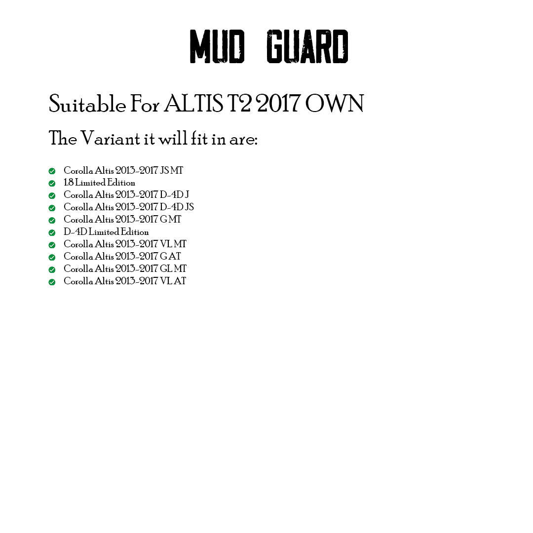 TOYOTA ALTIS 2017 ONWARDS, SET OF 4 PCS MUD GUARD
