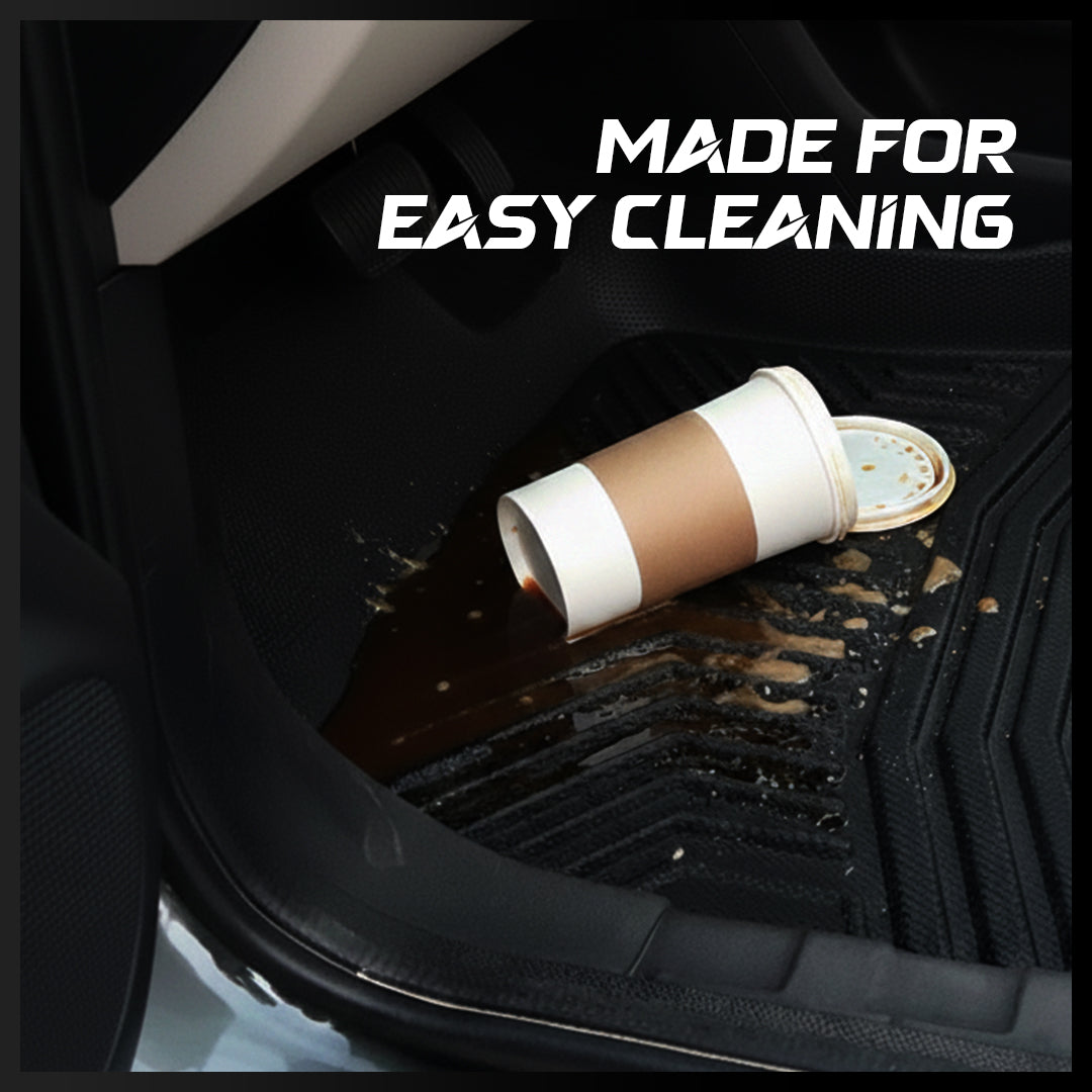 With a sleek black color and a thickness of 2.5mm, these mats feature a tray-like design with extra raised grooves that provide deeper coverage, keeping dirt, mud, and spills contained. They’re custom-fit from end to end according to OEM standards, ensuring your car stays clean and protected from front to back.