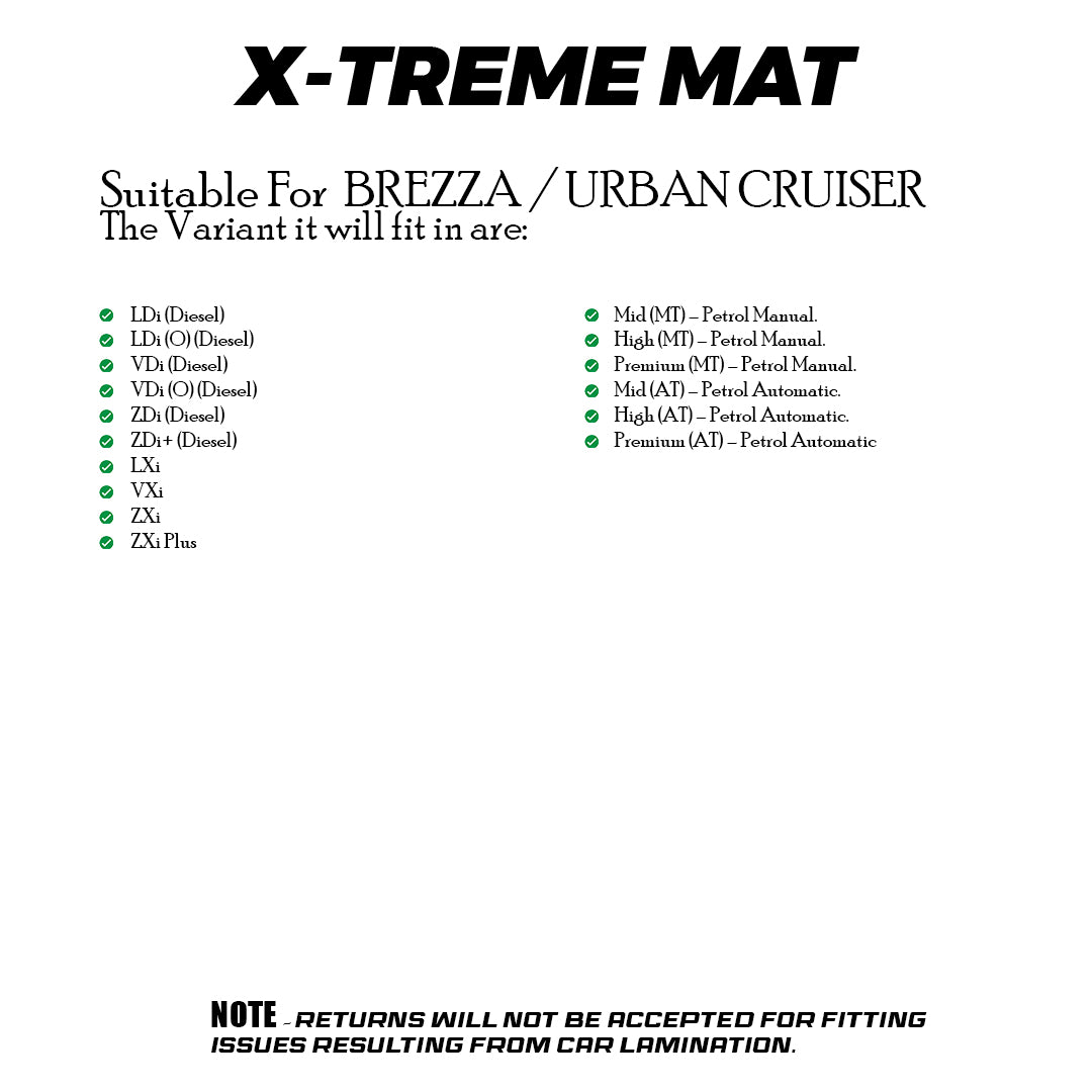 MARUTI BREZZA (2016-2021) / URBAN CRUISER , X-TREME MAT, SET OF 3 PCS