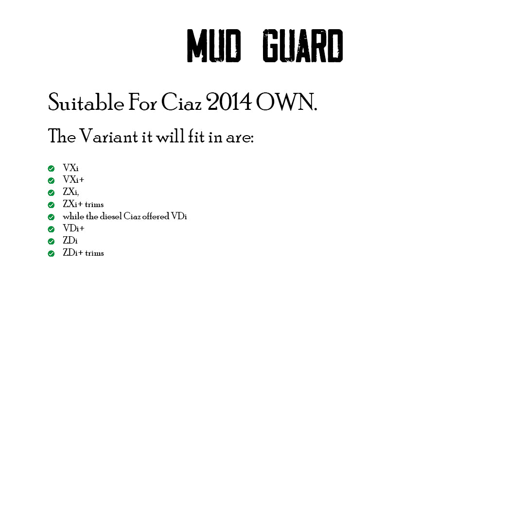 MARUTI CIAZ 2014 ONWARDS, SET OF 4 PCS MUD GUARD
