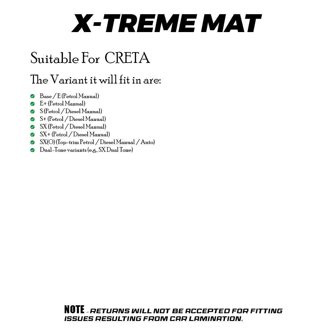 HYUNDAI CRETA 2015-2019, X-TREME MAT, SET OF 3 PCS