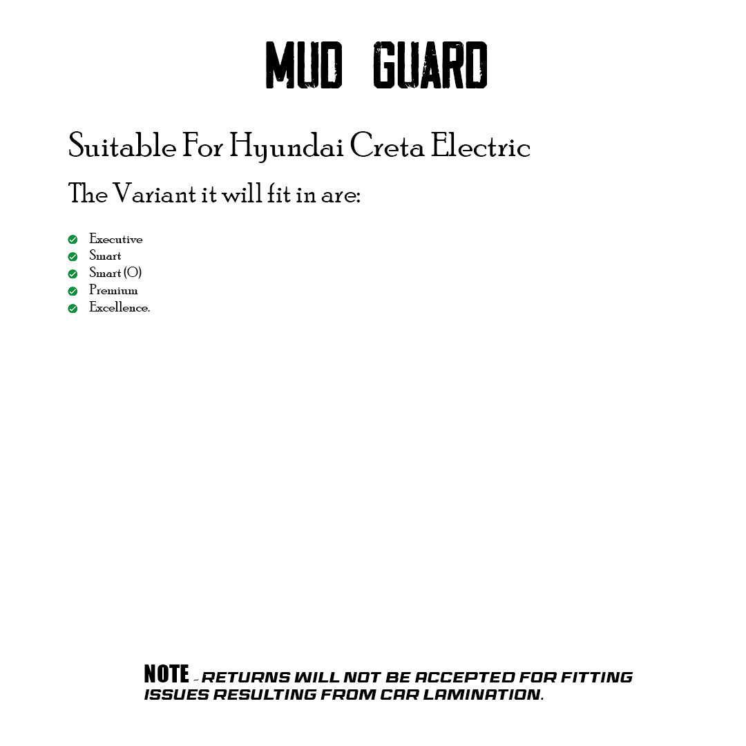 HYUNDAI CRETA EV 2024 ONWARDS, SET OF 4 PCS MUD GUARD
