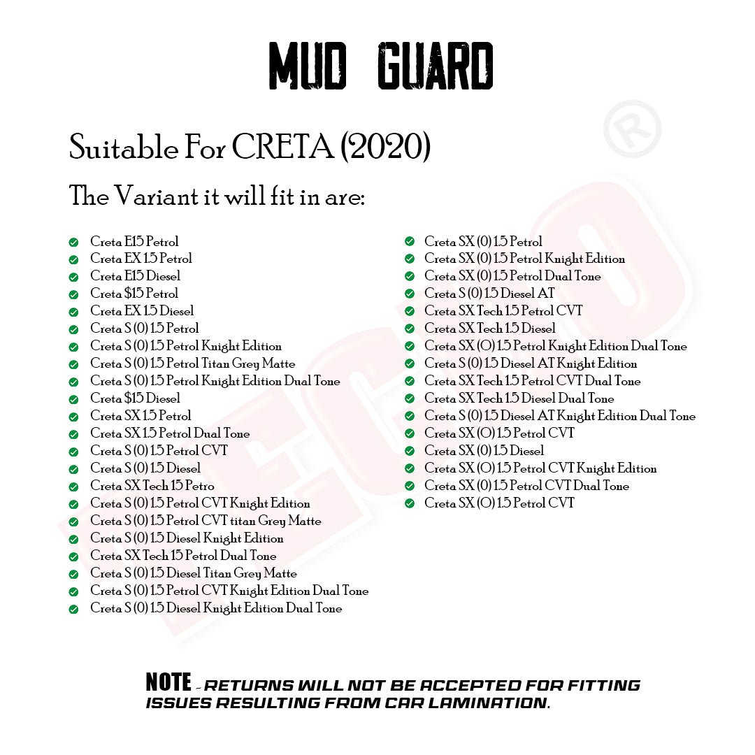 HYUNDAI CRETA 2015-2019 ONWARDS, SET OF 4 PCS MUD GUARD