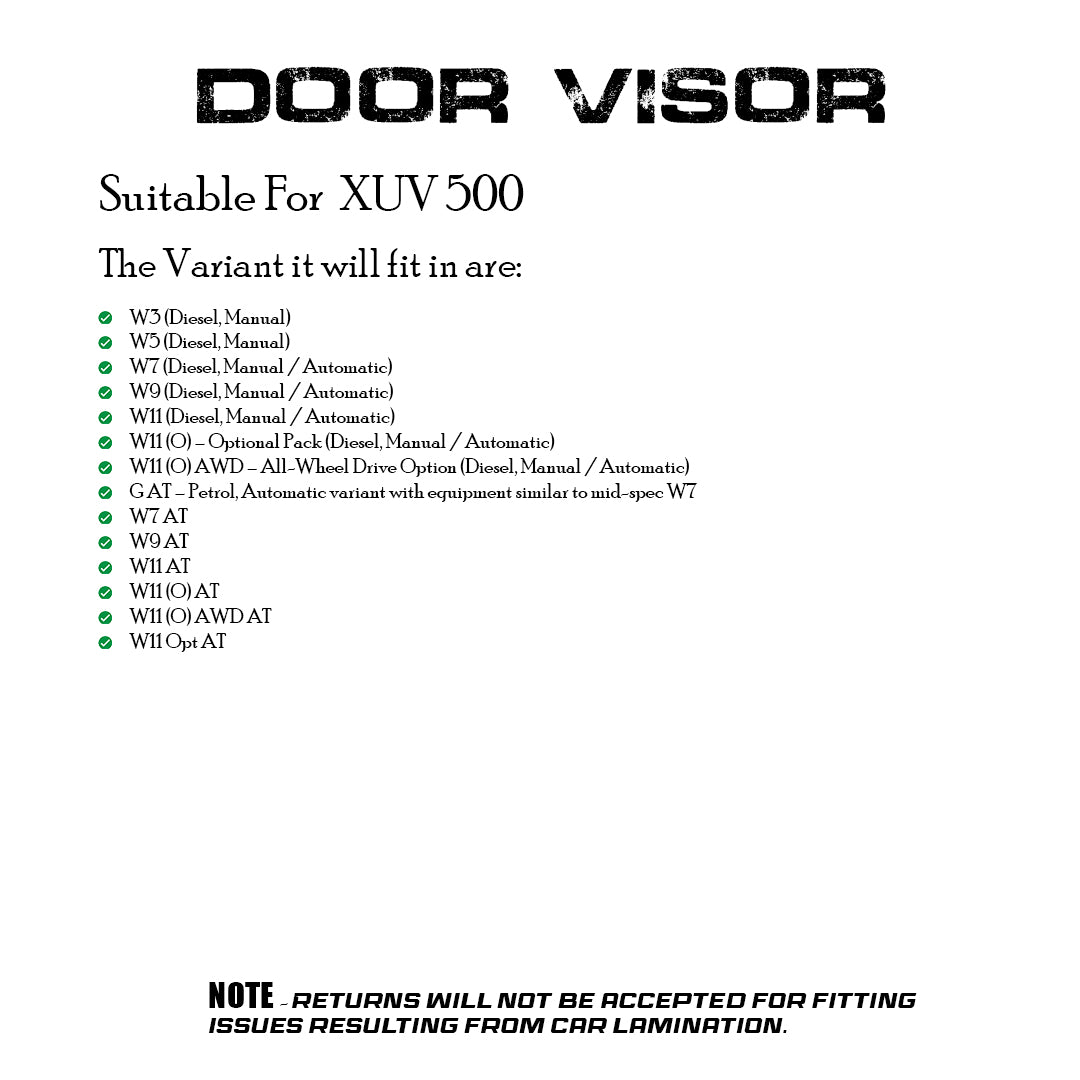 DOOR VISOR FOR MAHINDRA XUV 500 PLAIN