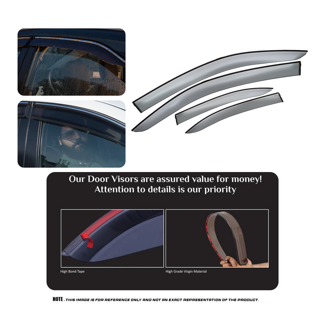 ○ Techo Car Door Visors are a perfect addition to enhance both the look and functionality of your vehicle. Made from fresh-grade polycarbonate plastic, these visors are built to be tough and durable, offering excellent protection against rain, wind, and sunlight. With a thickness of 2.2mm to 3mm, they provide a solid, long-lasting upgrade for your car.
