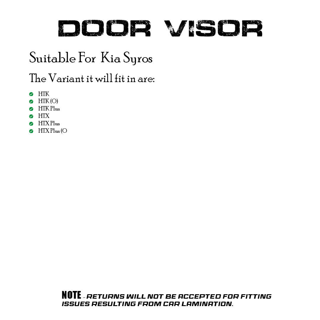 DOOR VISOR FOR KIA SYROS PLAIN 2025