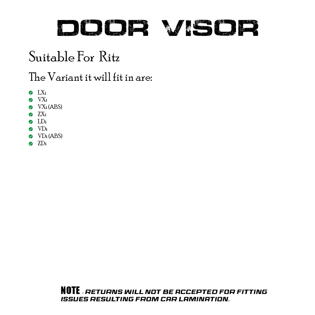 DOOR VISOR FOR MARUTI SUZUKI RITZ PLAIN 2009-2012