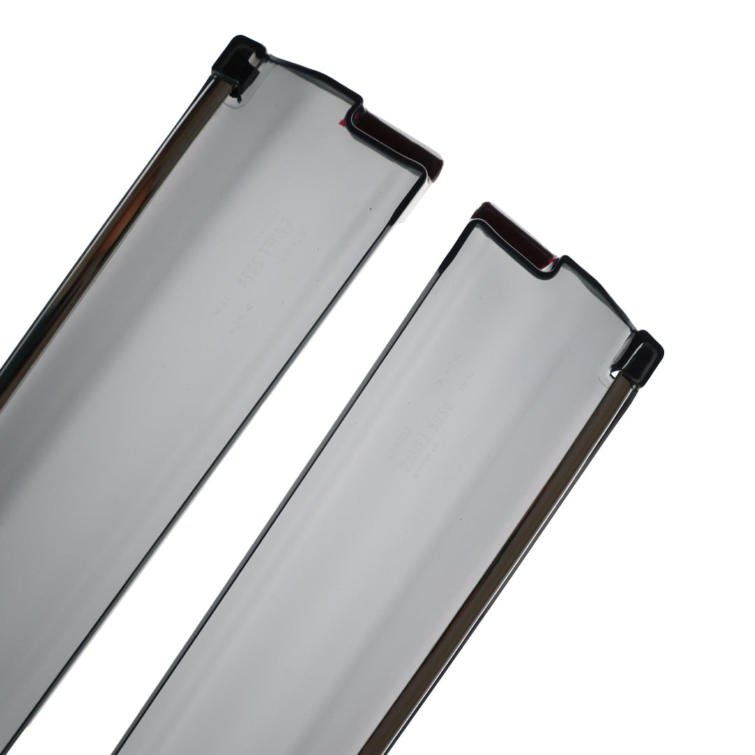○ The smokey black tint adds a sleek, stylish touch while reducing glare and improving comfort inside your vehicle. Designed to match OEM specifications, these visors fit perfectly and give your car a custom, factory-finished look. Installation is quick and easy, thanks to the high-quality 1.2mm thick adhesive tape (9mm wide), which ensures a strong and secure hold. Perfect for enhancing your car's appearance and performance!!