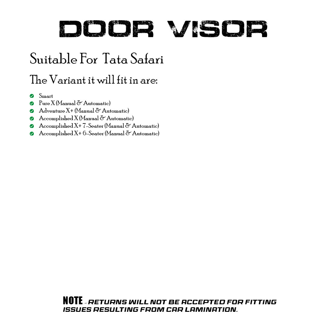 DOOR VISOR FOR TATA SAFARI 2023 PLAIN