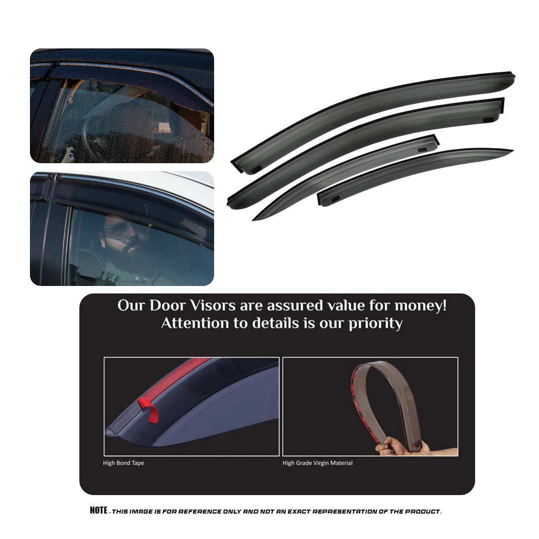 ○ Techo Car Door Visors are a perfect addition to enhance both the look and functionality of your vehicle. Made from fresh-grade polycarbonate plastic, these visors are built to be tough and durable, offering excellent protection against rain, wind, and sunlight. With a thickness of 2.2mm to 3mm, they provide a solid, long-lasting upgrade for your car.