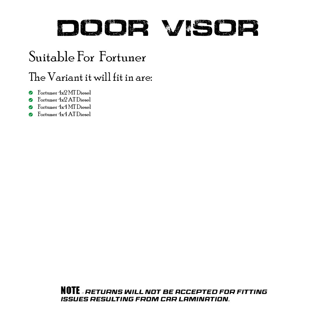 DOOR VISOR FOR TOYOTA FORTUNER PLAIN 2012-2015