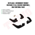· Made from a tough mix of Polypropylene(PP)and Thermoplastic Elastomer(TPE)these bad boys are 2.3-3mm thick – built to handle even the harshest conditions.