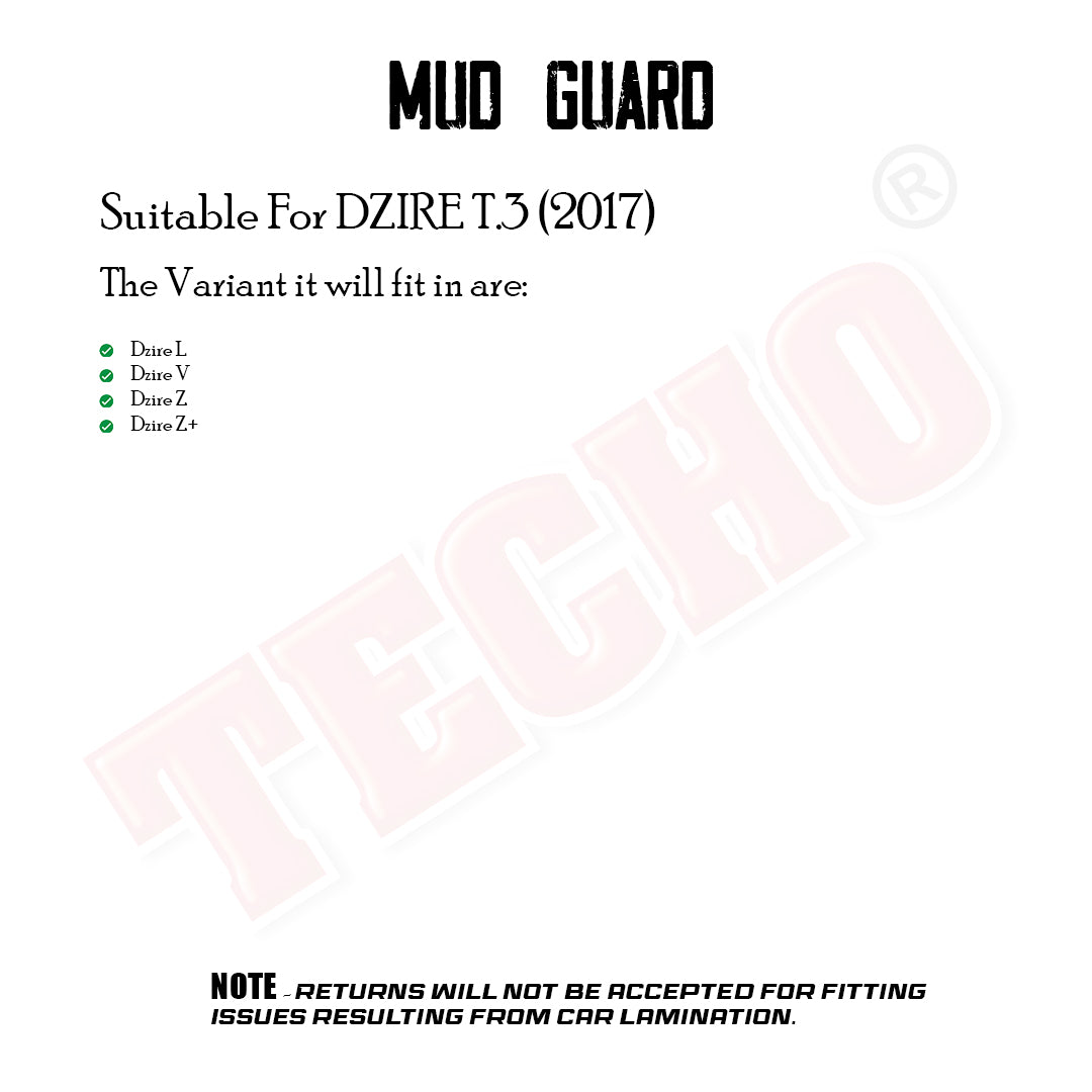 MARUTI DZIRE TYPE-3 - 2017-2023, SET OF 4 PCS MUD GUARD