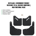 · With Techo's mud flaps, you can drive without worrying about what’s flying up from the road. Here’s what they’ll do for you: