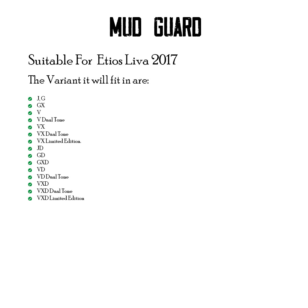TOYOTA LIVA/ETIOS 2017, SET OF 4 PCS MUD GUARD