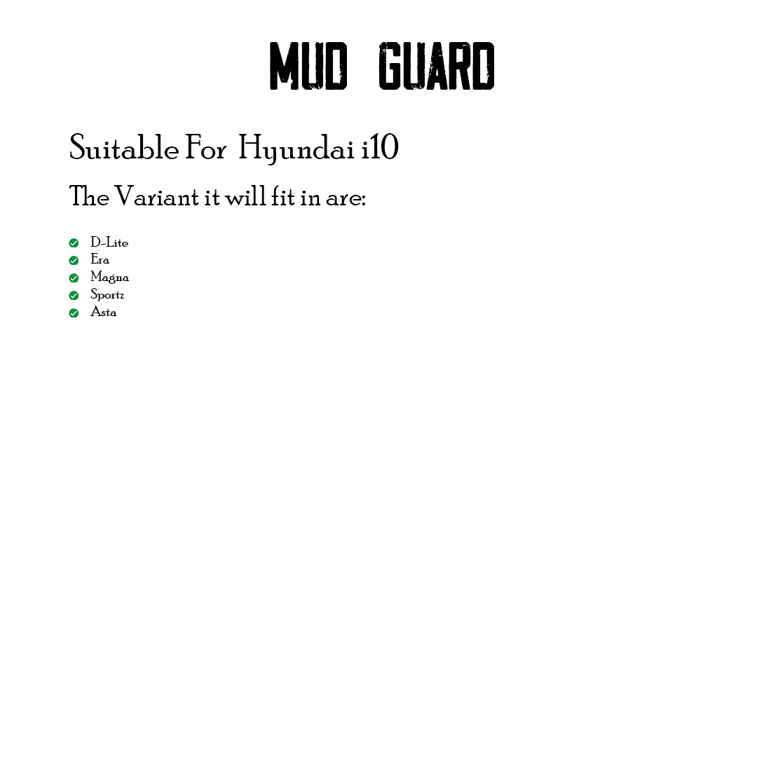 HYUNDAI I-10 2010 ONWARDS, SET OF 4 PCS MUD GUARD