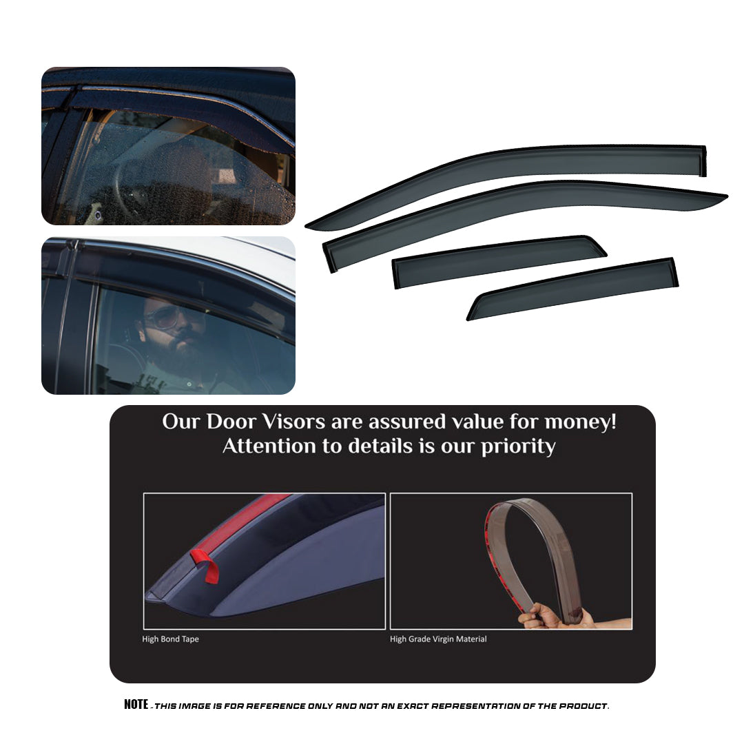 ○ The Techo Car Door Visors are the perfect addition to enhance both the look and functionality of your vehicle. Made from fresh-grade polycarbonate plastic, these visors are built to be tough and durable, offering excellent protection against rain, wind, and sunlight. With a thickness of 2.2mm to 3mm, they provide a solid, long-lasting upgrade for your car.