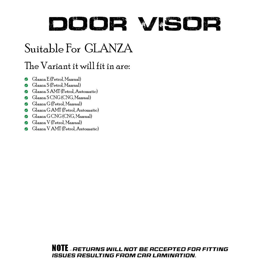 TOYOTA GLANZA 2016-2021, DOOR VISOR PLAIN