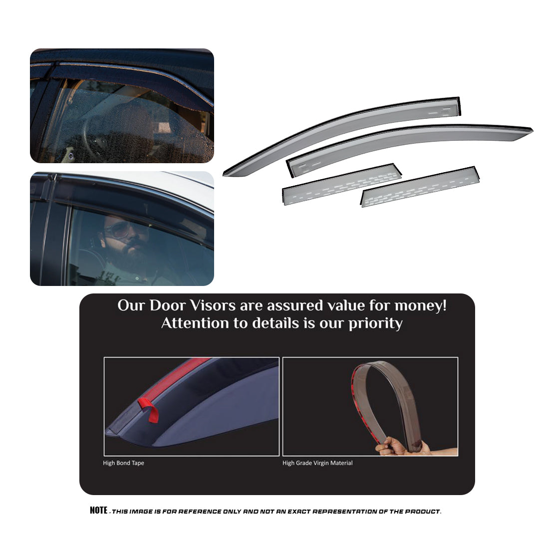 ○ The Techo Car Door Visors are the perfect addition to enhance both the look and functionality of your vehicle. Made from fresh-grade polycarbonate plastic, these visors are built to be tough and durable, offering excellent protection against rain, wind, and sunlight. With a thickness of 2.2mm to 3mm, they provide a solid, long-lasting upgrade for your car.