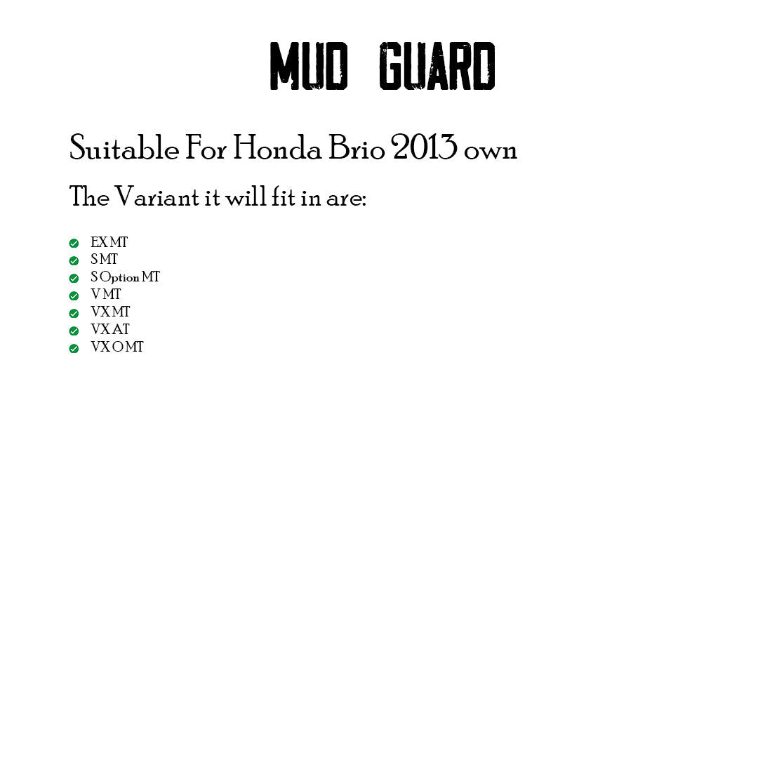 HONDA BRIO 2013 ONWARDS, SET OF 4 PCS MUD GUARD