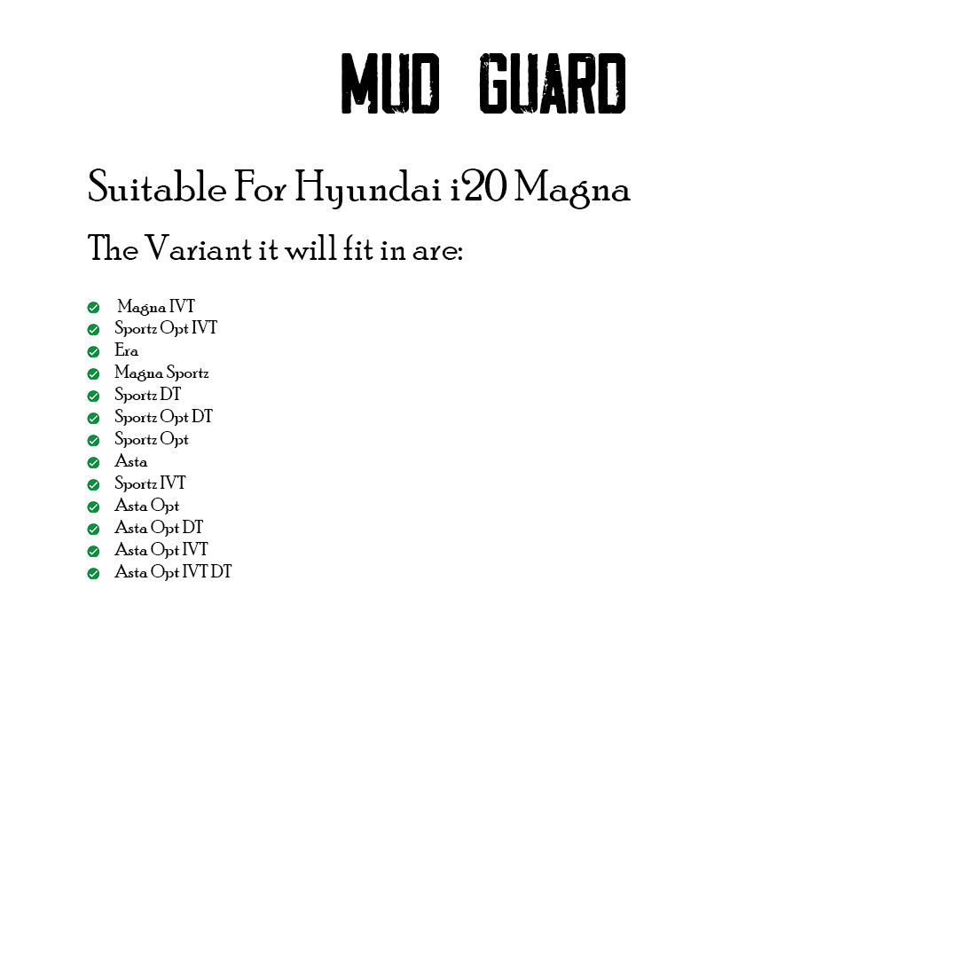 HYUNDAI I-20 MAGNA 2020-2022, SET OF 4 PCS MUD GUARD