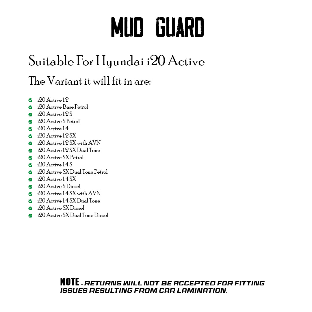 HYUNDAI I20 ACTIVE 2015-2020, SET OF 4 PCS MUD GUARD