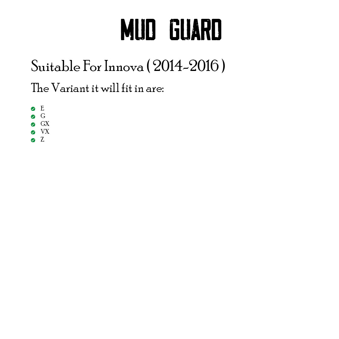 TOYOTA INNOVA 2014-2016 ONWARDS, SET OF 4 PCS MUD GUARD