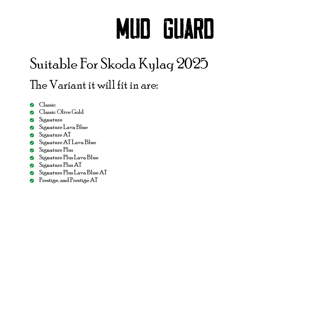 SKODA KYLAQ 2024 ONWARDS, SET OF 4 PCS MUD GUARD