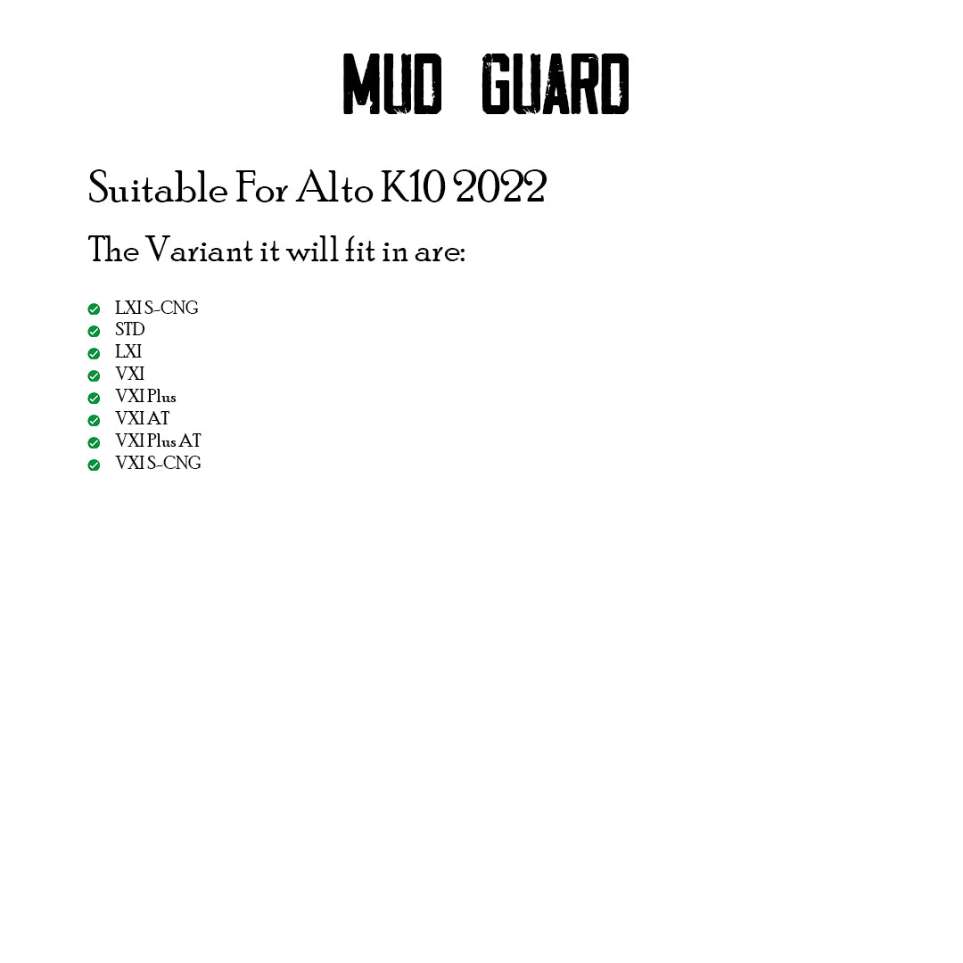 MARUTI ALTO K-10 2022 ONWARDS, SET OF 4 PCS MUD GUARD