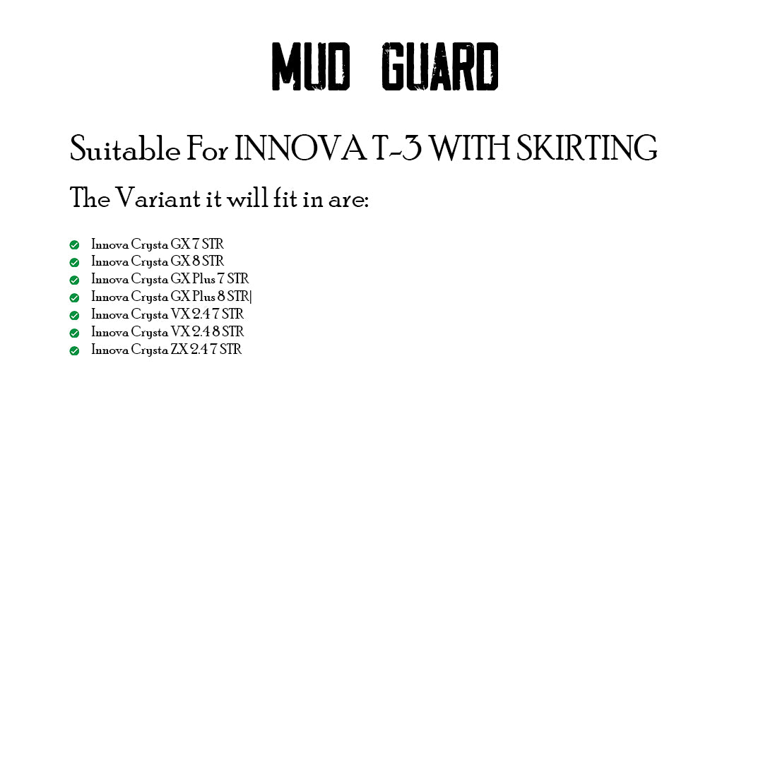NEW INNOVA TYPE-3 WITH SKIRTING, SET OF 4 PCS MUD GUARD