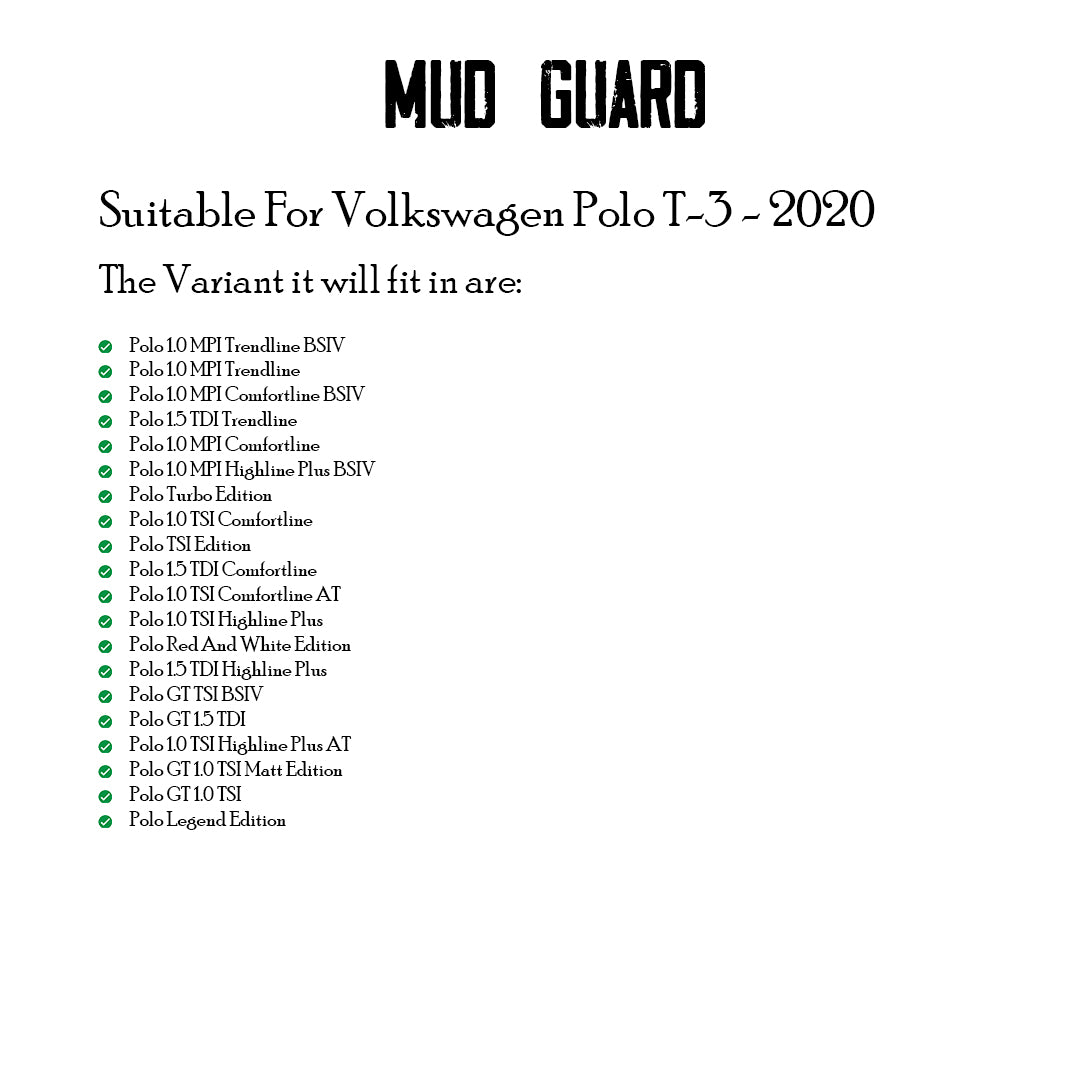 VOLKSWAGEN POLO 2020 ONWARDS, SET OF 4 PCS MUD GUARD