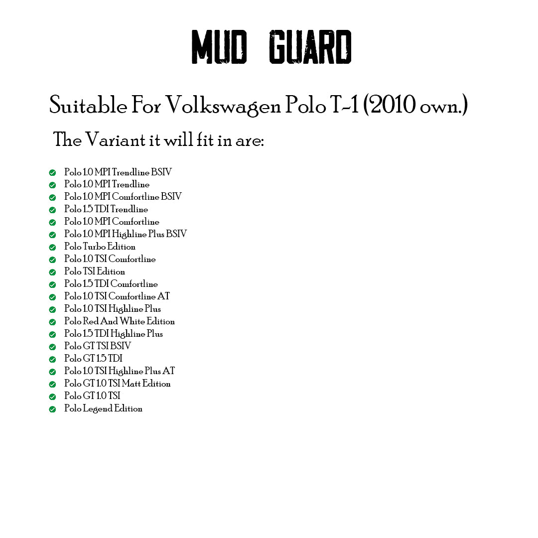 VOLKSWAGEN POLO TYPE-1 2010-2013, SET OF 4 PCS MUD GUARD