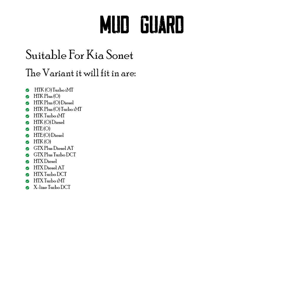 KIA SONET 2020 ONWARDS, SET OF 4 PCS MUD GUARD