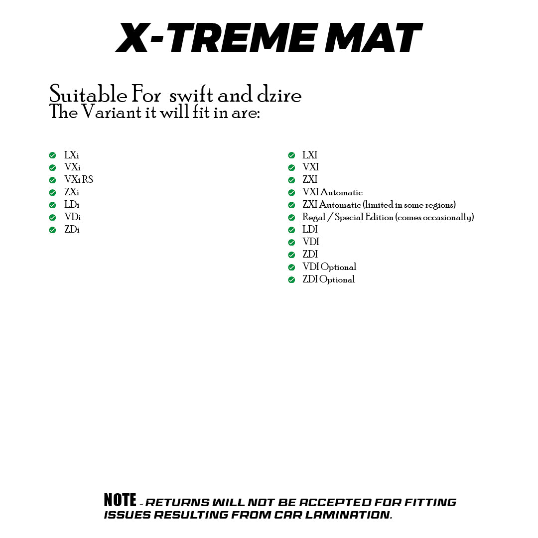 MAUTI SWIFT 2011-2017 & DZIRE 2012-2016, X-TREME MAT, SET OF 3 PCS