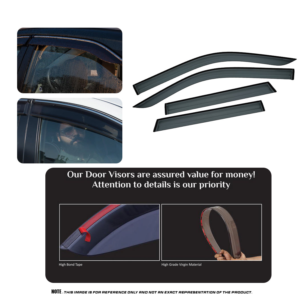 ○ The Techo Car Door Visors are the perfect addition to enhance both the look and functionality of your vehicle. Made from fresh-grade polycarbonate plastic, these visors are built to be tough and durable, offering excellent protection against rain, wind, and sunlight. With a thickness of 2.2mm to 3mm, they provide a solid, long-lasting upgrade for your car.