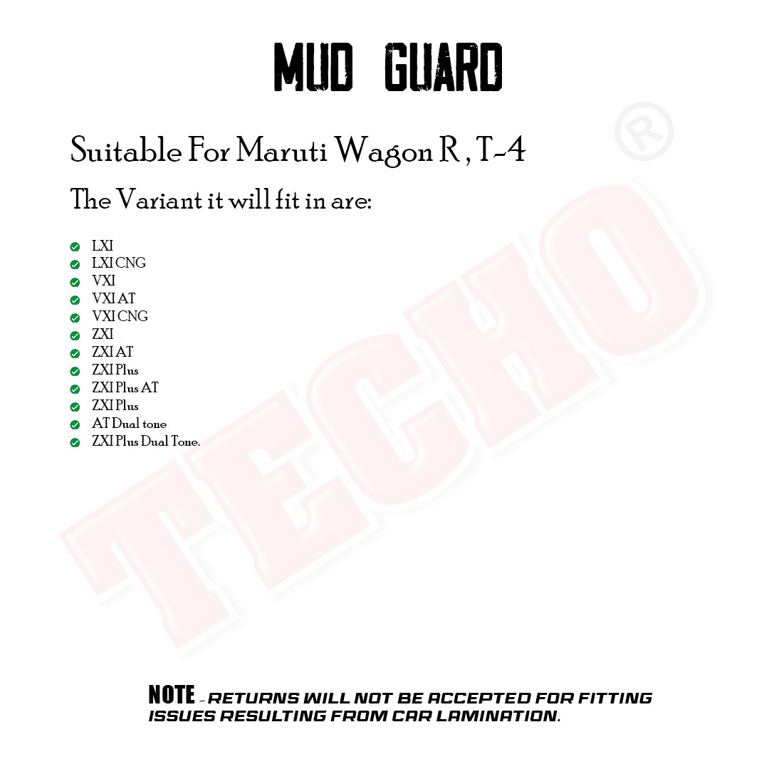 MARUTI WAGON-R 2019 ONWARDS, SET OF 4 PCS MUD GUARD