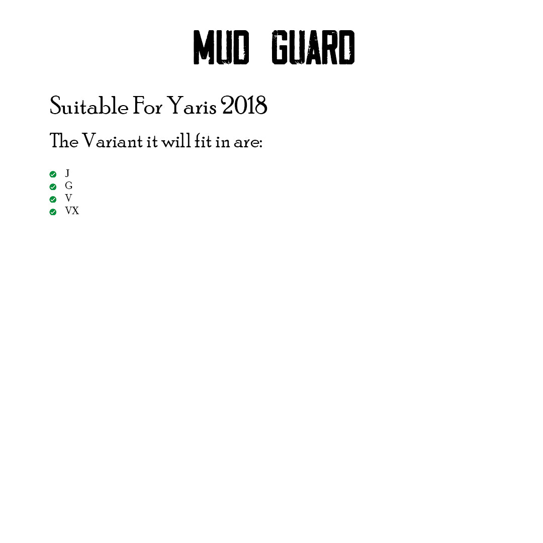 TOYOTA YARIS 2018 ONWARDS, SET OF 4 PCS MUD GUARD